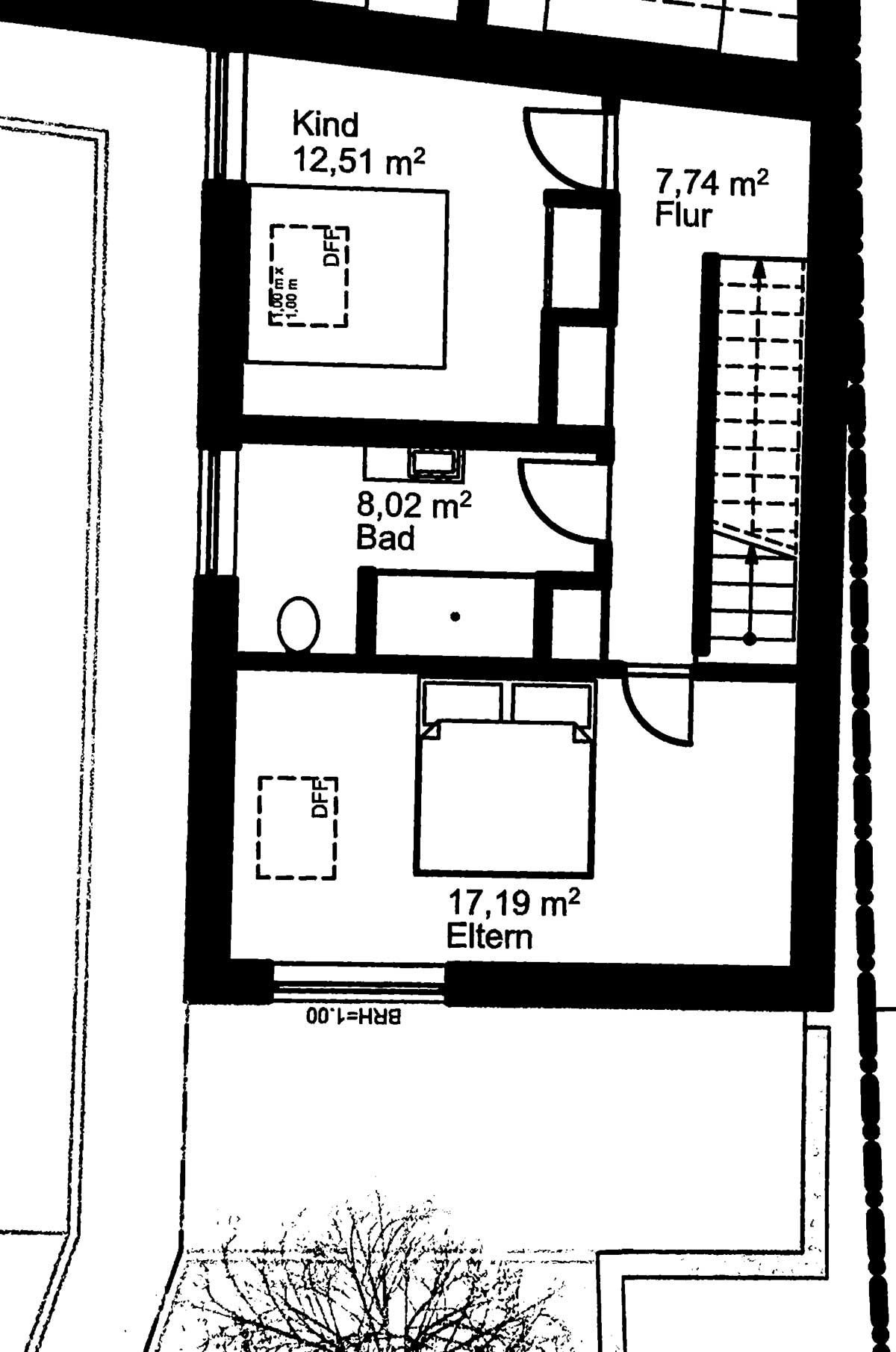 Aufgang zum 1.OG mit Schlazimmer und Bad