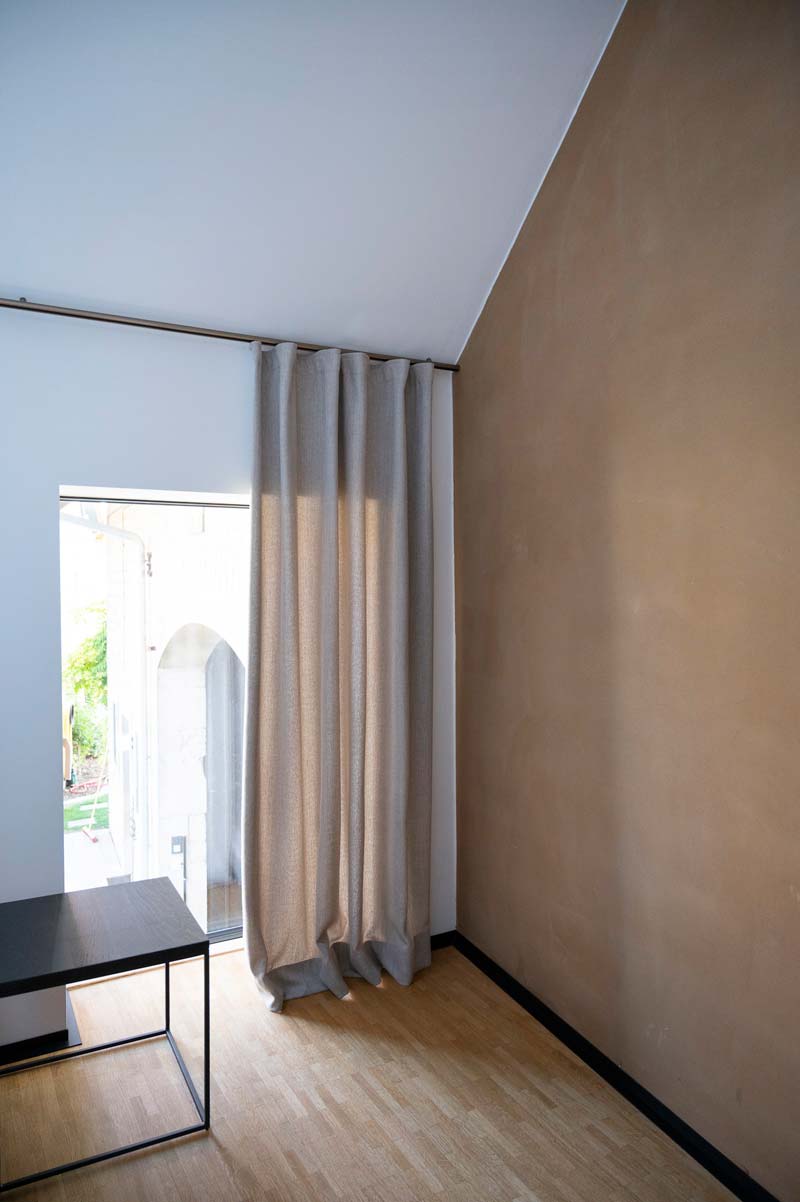 Blick aus dem gemütlichen Schlafzimmer mit Lehmputzwänden - Schlafwellness ;)