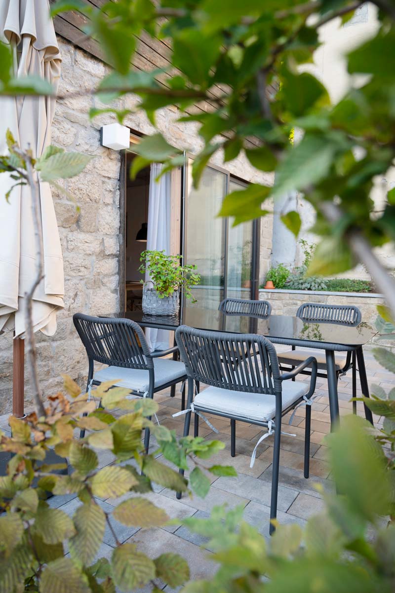 Direkt vor dem Torhaus lädt die eigene Terrasse dazu ein, die frische Luft und die besondere Atmosphäre des Hofes zu genießen – sei es beim Frühstück in der Morgensonne oder bei einem entspannten Abend.